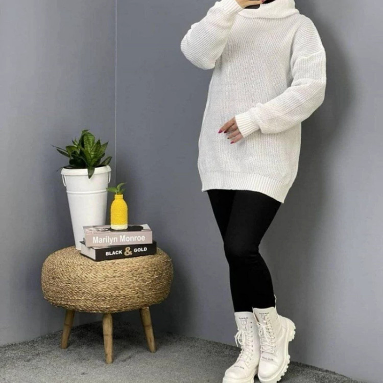 تونیک بافتنی یقه شل کاموایی استایل ازاد ولش