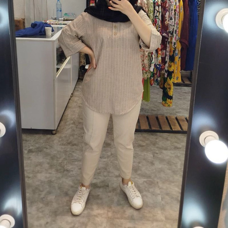 تونیک نخی لینن راه راه