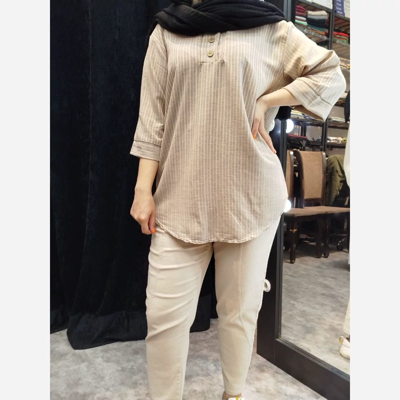 تونیک نخی لینن راه راه